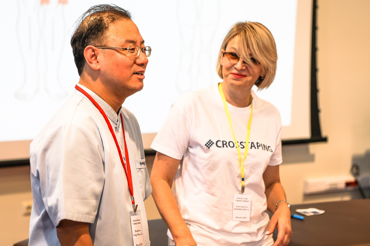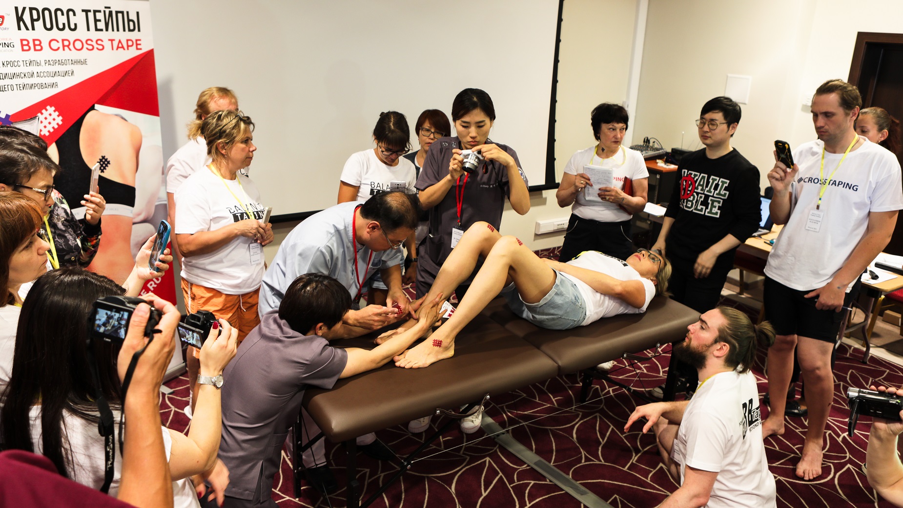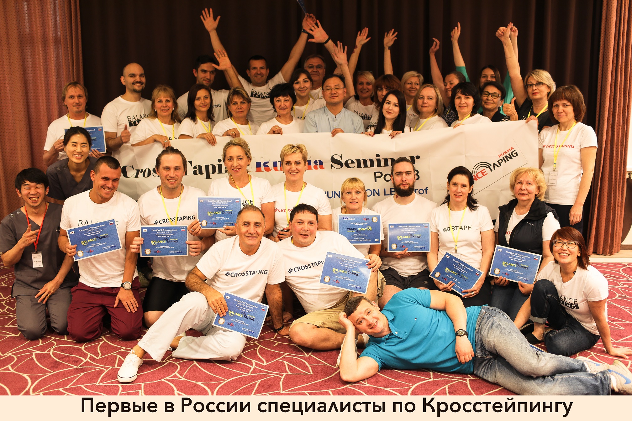 Фото с прошедшего в 2017 г. в г. Москве первого в России и Европе полного обучающего обучающего курса по Кросстейпингу от создателя метода Профессора Jung-Hoon Lee (ведущего специалиста по тейпированию в Ю.Корее).